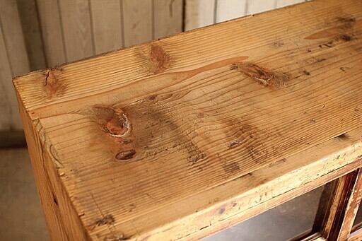 古く味のある木製引き出し8杯 ガラス戸棚付き