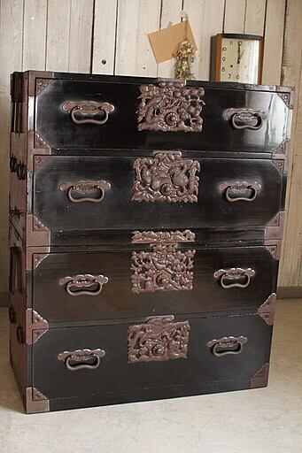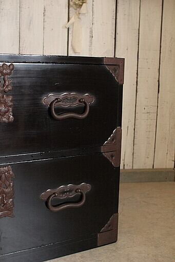 明治期の肉厚な打ち出し金具庄内箪笥です。