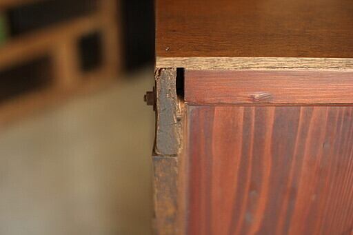 部品欠品等ありましたので、横板や枠の部材を古材で交換補修しております。