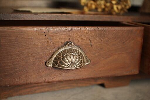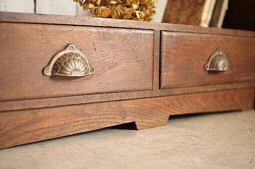 古い小ぶりな木製の収納棚3段 引き出し2杯
