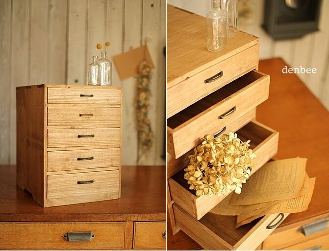 古い木製の小引き出し5段