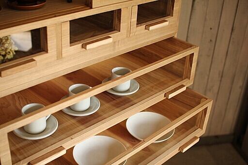前面ガラスの引き出し8杯×ガラス戸棚