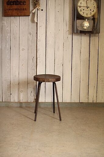 古い鉄脚と古材の丸椅子