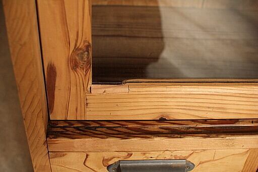 古い木製のガラス戸棚 引き出し5杯