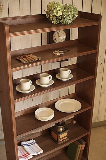 古い木製のオープンラック6段