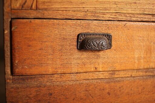 雰囲気の良い木製ガラス戸棚 引き出し2杯