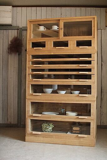 商談中 ガラス戸棚×前面ガラスの引き出し10杯