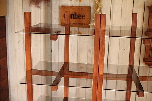 木製枠×ガラス棚の折り畳み収納棚