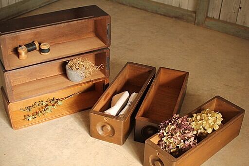 古い木製の収納箱6個セット 引き出し