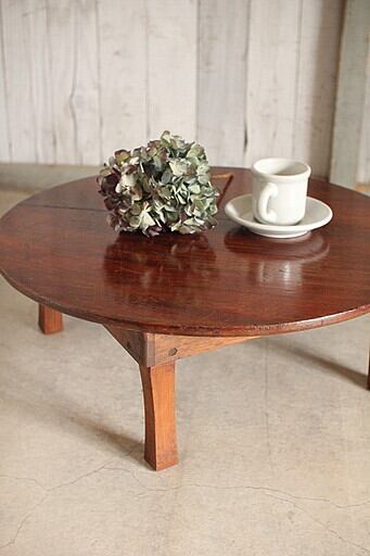 古い小ぶりな木製の丸テーブル