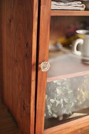 古い小ぶりな木枠のガラス戸棚