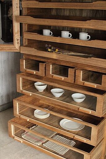 ガラス扉内の引き出し