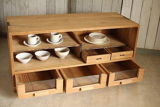 ガラス戸棚×前面ガラスの引き出し3杯×木製小引き出し2杯