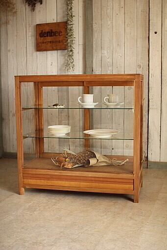 古い木枠のガラスケースです。