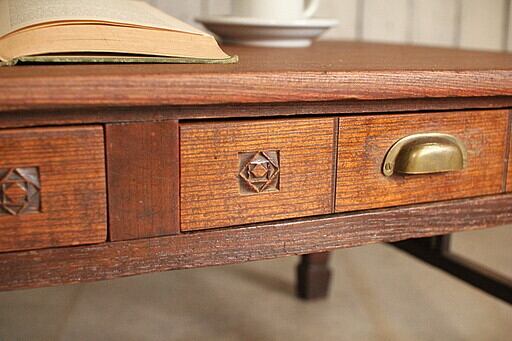 雰囲気の良い古い木製の机 引き出し2杯 テーブル