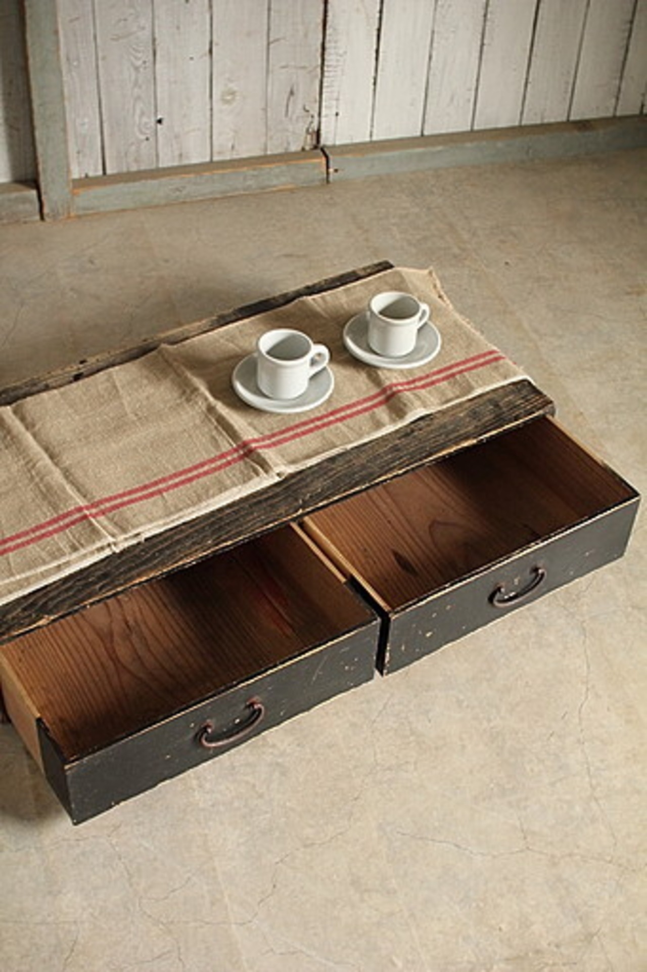 古い木製の引き出し2杯 テーブル
