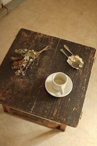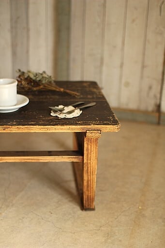 古く味のある小ぶりな木製テーブル