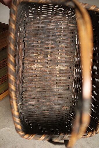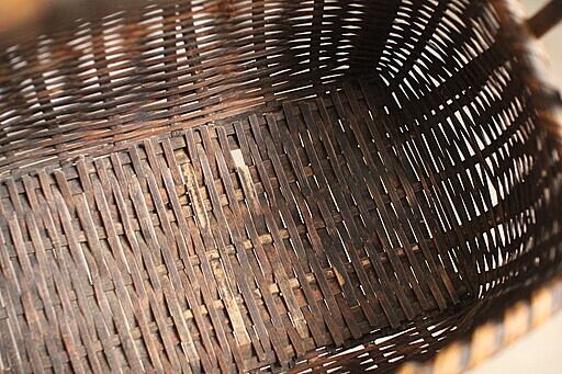 持ち手付きの竹籠の竹のほつれや切れがあります。