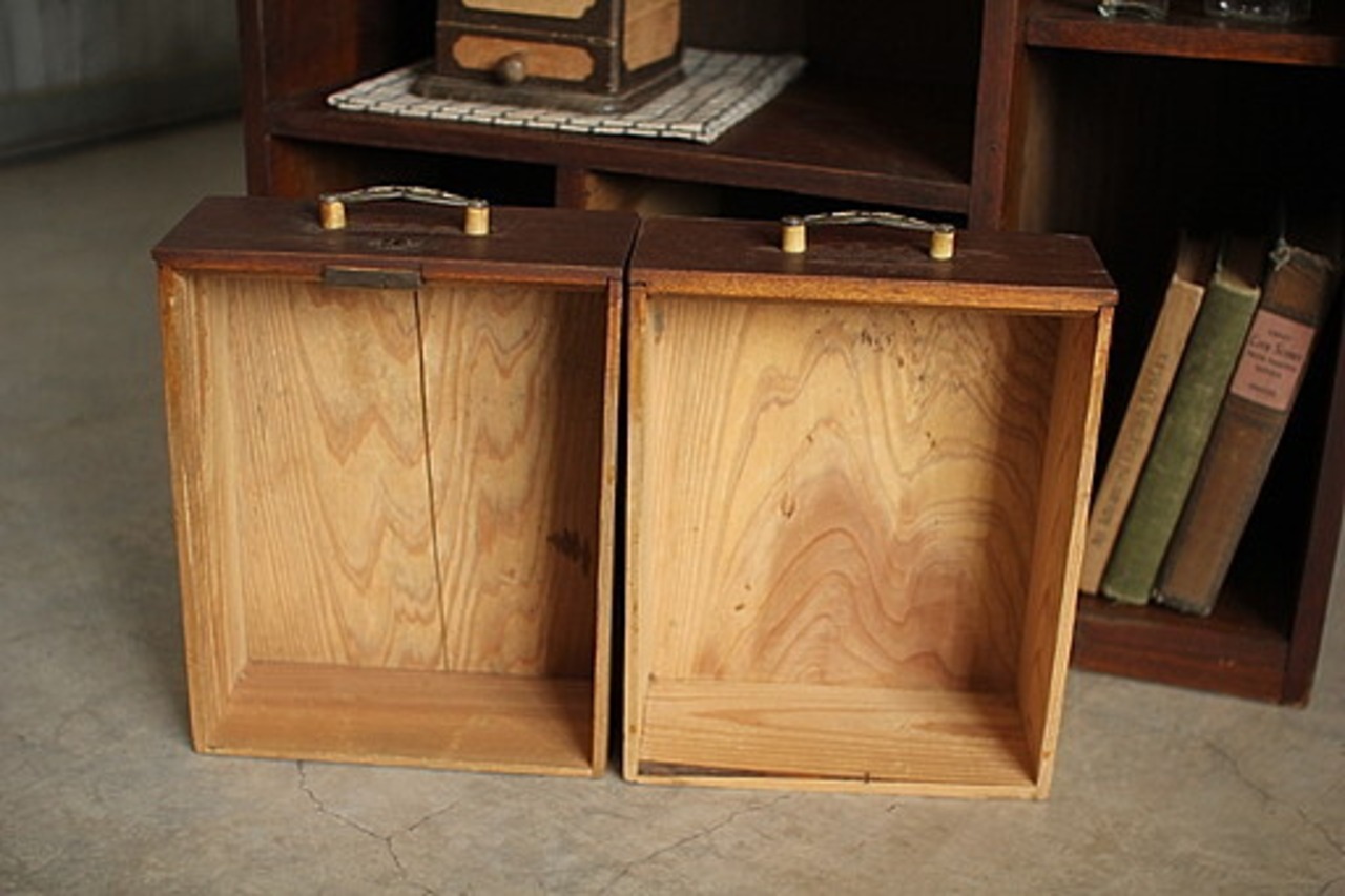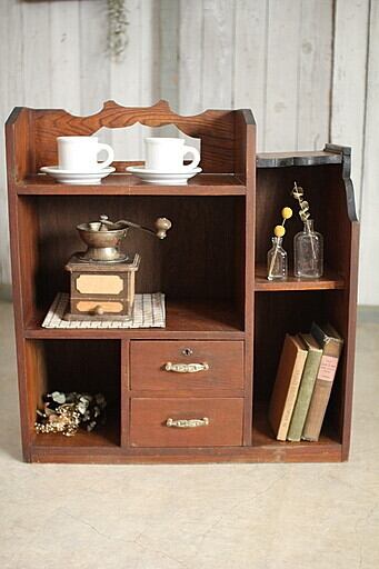 古い小ぶりな木製の収納棚 小引き出し2杯