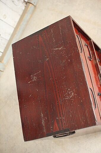 上の引き出しの前に閂、右下に扉が付いておりましたがどちらも欠品しております。