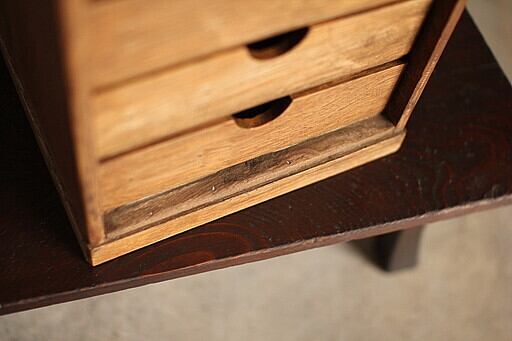 古い楢材の小引き出し4段