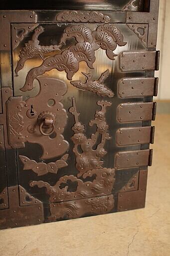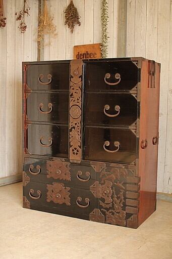 松竹梅鶴亀図金具 庄内箪笥5段 総桐無垢材製