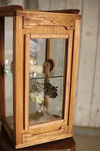 古い木枠の卓上ガラスケースです。