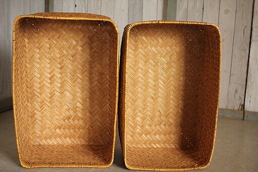 古い竹編みの収納かごです。