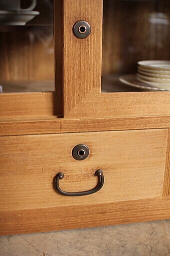 古いガラス戸棚×小引き出し3杯です。