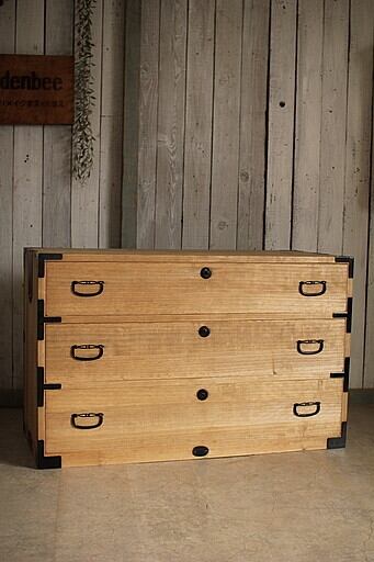 古い木製のチェスト 引き出し3段 総桐箪笥