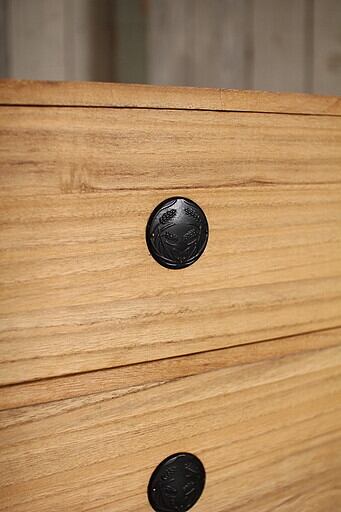 引き出し上段の前板に大きく割れがありますが、接着補修を行っております。