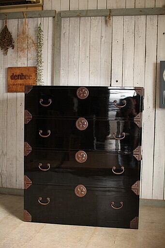 綺麗な丸金具庄内箪笥4段