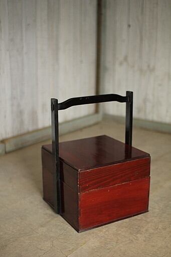 古い持ち手付きの木箱2段 岡持ち