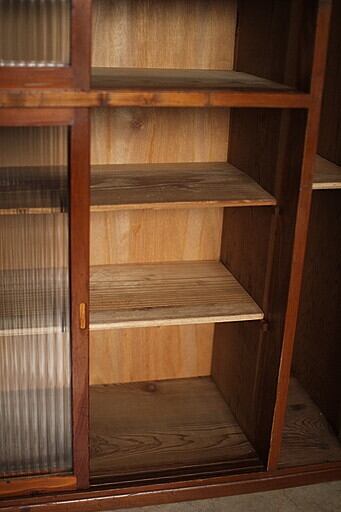 古い木枠のモールガラス戸棚