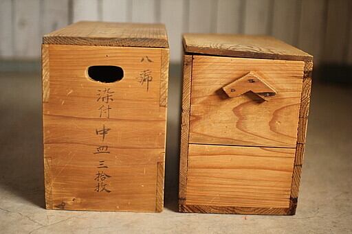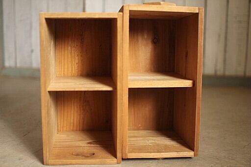 古い2マスの木製収納箱 2個セット