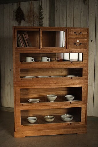 前面ガラスの引き出し4段×ガラス戸棚×木製小引き出し2段