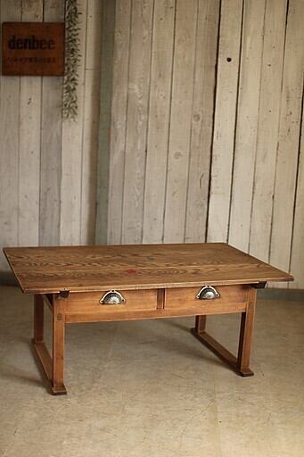 雰囲気の良い古い木製の机 引き出し2杯 テーブル