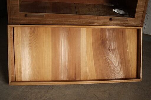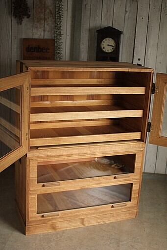 ガラス扉付き木製引き出し3段×前面ガラス引き出し2段