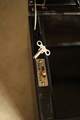 雰囲気の良い古い鉄製の金庫 木箱