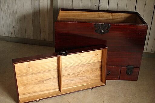 綺麗な桐製無垢材の櫃 抽斗2杯 箪笥