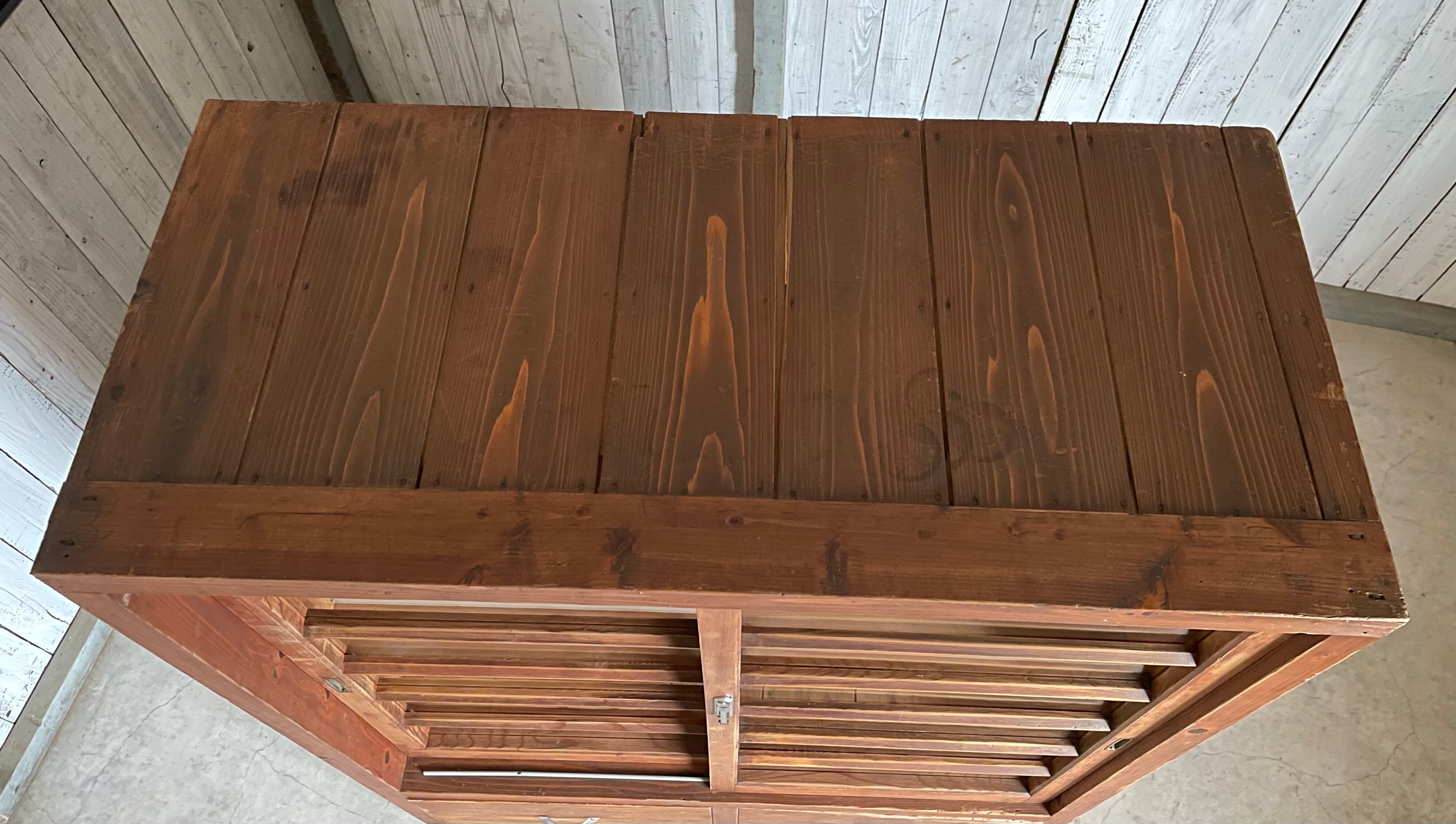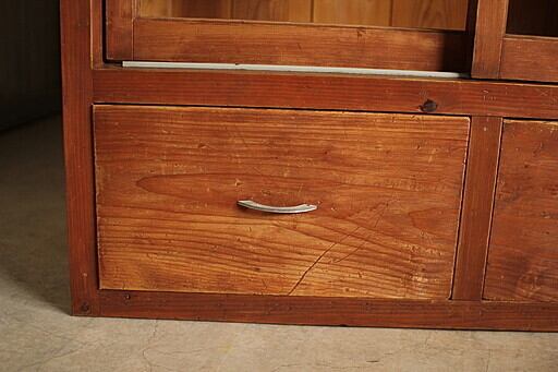 古い木枠の格子ガラス戸棚 引き出し2杯