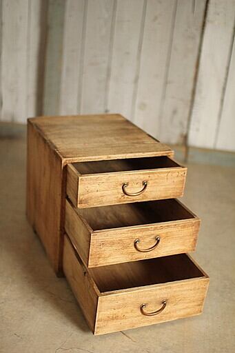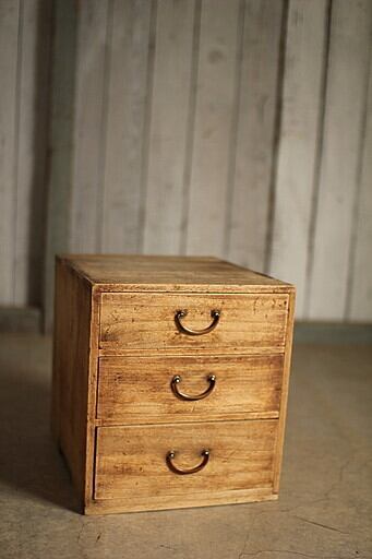 古く味のある木製の小引き出し3段