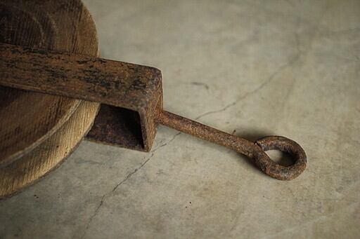 古く味のある鉄と木製の滑車