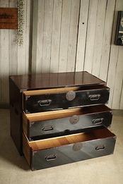 綺麗な丸金具庄内箪笥 3段