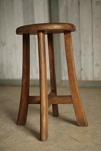 古く味のある木製の丸椅子