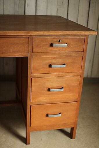 古い木製の片袖机 引き出し5杯 ワークデスク