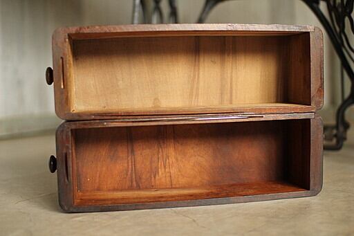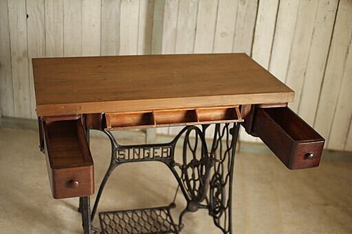 古い網目鉄脚と古材のテーブル×木製小引き出し シンガー