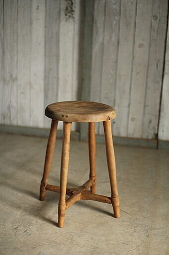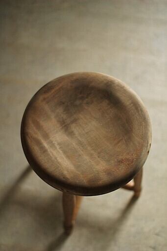 古く味のある木製の丸椅子