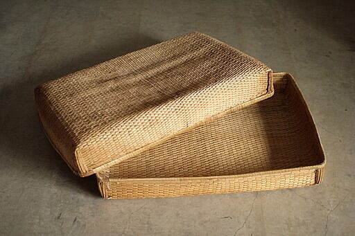 味のある古い行李 かご 平型