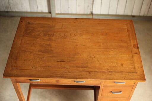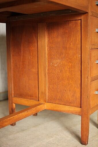 古い木製の片袖机 引き出し6杯 ワークデスク